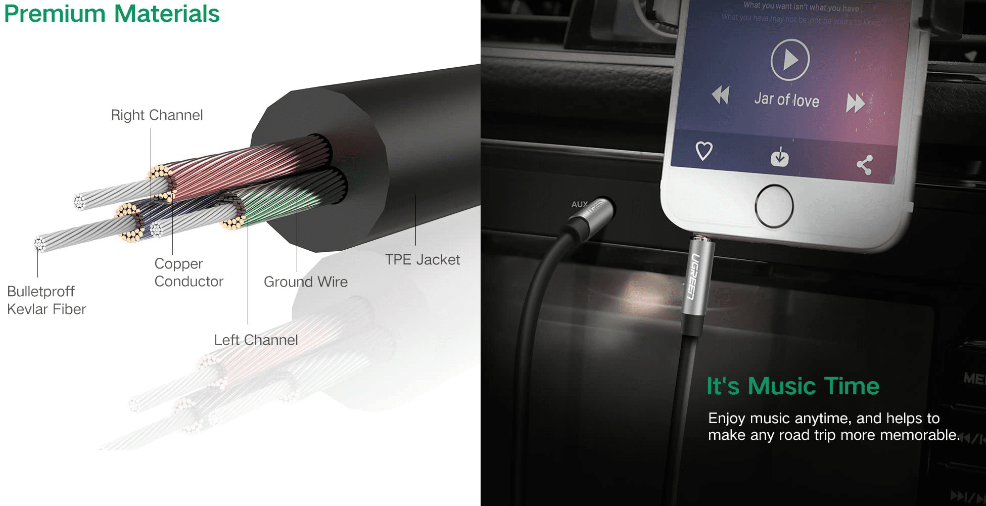 El cable de audio UGREEN de 3,5 mm transmite la lista de reproducción desde un dispositivo de salida auxiliar (salida de línea) a un dispositivo de entrada auxiliar (entrada de línea) directamente.