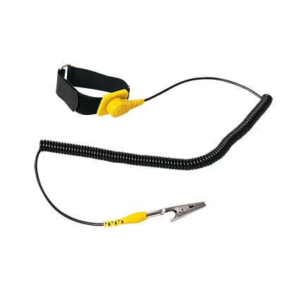 - Esta muñequera reutilizable es un dispositivo de seguridad utilizado para canalizar la electricidad estática a una superficie de conexión a tierra adecuada mientras se maneja un equipo informático sensible.