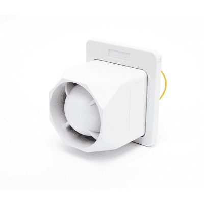 -Cubierta trasera canalizada para un mejor cableado. -Tono de salida dual, constante o pulsos. -Resistente al agua, protección contra UV. -Salida de dos tonos de 112 dB. -25 watts de potencia. -Consumo de 1200 mA.