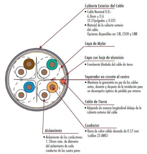 Además, la construcción del blindaje asegura que la diafonía externa sea virtualmente de cero.