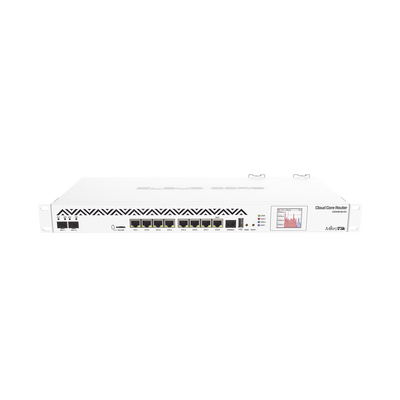 Nuestro enrutador más rápido ahora se ha vuelto aún mejor: el nuevo CCR1036-8G-2S+ ahora tiene dos puertos SFP+ para soporte de interfaz 10G (módulo SFP + disponible por separado). Utiliza la misma CPU Tilera de 36 núcleos que nuestro otro modelo CCR1036 y ofrece el mismo rendimiento, pero ahora son posibles enlaces diez gigabit.