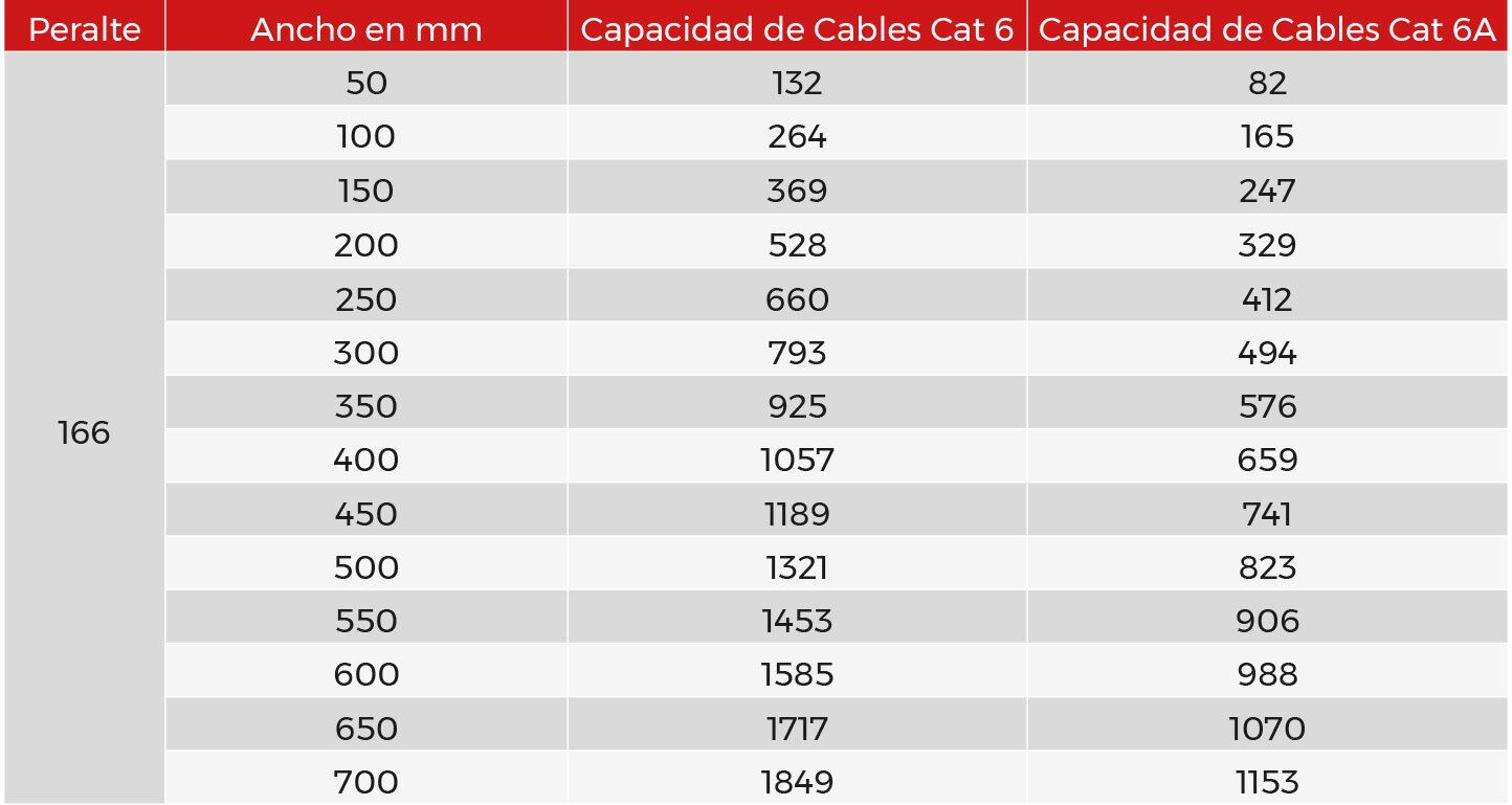 Cantidad de carga de cables, con Peralte 166 mm.