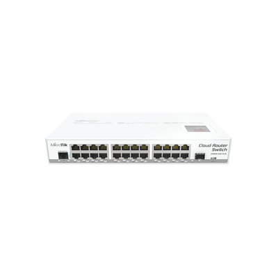 Cloud Router Switch es nuestra nueva serie Smart Switch. Combina las mejores características de un router totalmente funcional y un conmutador de capa 3, es alimentado por el RouterOS. Todas las opciones de configuración del switch específicos están disponibles en un menú especial, pero si lo desea, los puertos pueden ser retirados de la configuración del switch, y se utilizan con fines de enrutamiento.