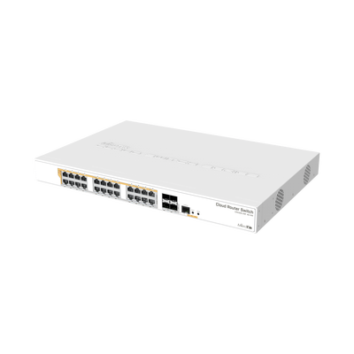 CRS328-24P-4S+RM es un conmutador de 28 puertos independientes, tiene 24 puertos Gigabit Ethernet, que ofrecen diferentes opciones de salida de energía: PoE pasivo, PoE de bajo voltaje, 802.3af / at (Tipo 1 “PoE” / Tipo 2 “PoE + ”) Con detección automática. La salida PoE pasa por los pines del modo B (4,5 +) (7,8-). Los cuatro puertos SFP + brindan opciones de conectividad de hasta 10 Gbps a través de fibra óptica o módulos Ethernet (no incluidos).
