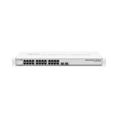 Cloud Smart Switch 326-24G-2S + RM es un switch SwOS Gigabit Ethernet con 24 puertos con dos puertos SFP+ en una carcasa de montaje en rack de 1U que proporciona conectividad de velocidad de cable con varias características de conmutación nuevas.