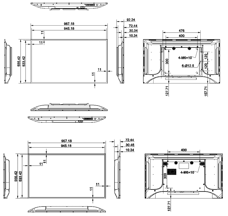 Dimensiones sin montaje: 967.18 mm x 555.42 mm x 72.44 mm