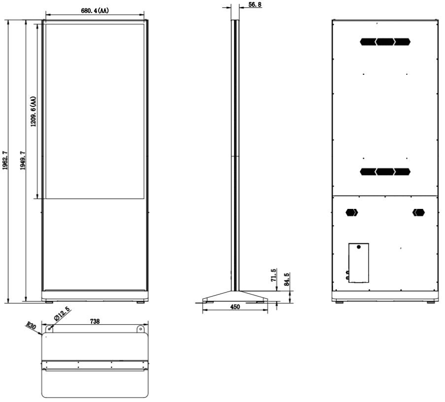 Dimensiones: 1962.7 mm x 738 mm x 450 mm