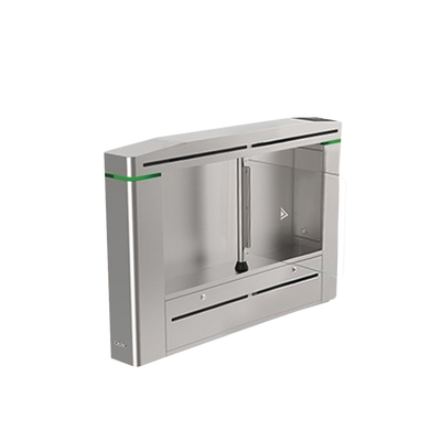 La solución es para crear carriles de 90 cms para el paso de la gente y las aletas son de Acrílico, el material del torniquete es acero inoxidable.
