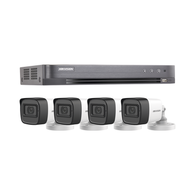 HIK5MPSLQ-KIT-HIKVISION-(MICRÓFONO INTEGRADO) KIT TURBOHD 5 Megapixel / DVR 4 Canales / 4 Cámaras Bala con Micrófono Integrado (exterior 2.8 mm) / Fuente de Poder / Accesorios de Instalación