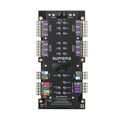 El modul de Entrads es un Modulo de Extencion de multiples entradas el cual puede controlar hasta 12 entradas supervisadas, 1 tamper switch y 2 relevadores. Un total de 31 unidades puedesn ser conectadas a un equipo Maestro via RS485 en conexion en cascada. Esto permitiendo usar las entradas para enlazarlas a sensores o contactos de puertas etc., y tambien como el brindar una sencilla interface de contacto seco a otros sistemas.