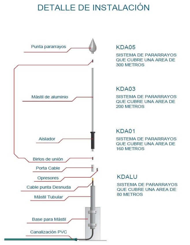 | 1 | KDALUPUNTA | Punta pararayos KDALU para protección de 40 m de radio (sin venta individual). |