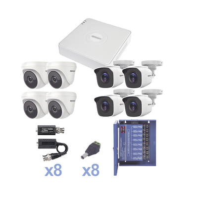 KESTXLT4BW/4EW-EPCOM-KIT TurboHD 720p / DVR 8 Ch / 4 Cámaras Bullet ( exterior 3.6 mm ) / 4 Cámaras Eyeball (interior 2.8mm ) / Transceptores / Conectores / Fuente de Poder Profesional