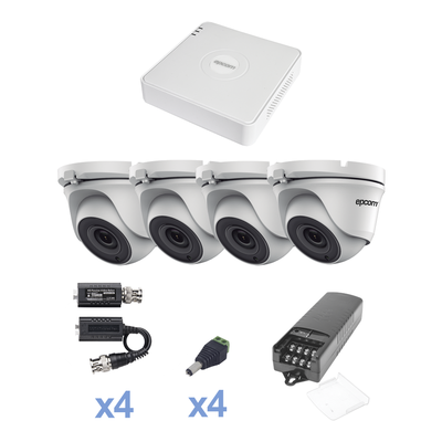 KESTXLT4EW-EPCOM PROFESSIONAL-KIT TurboHD 720p / DVR 4 Canales / 4 Cámaras Eyeball 92° visión (exterior) / Transceptores / Conectores / Fuente de Poder Profesional