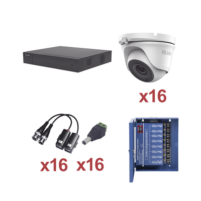 KH720P16DW-HiLook by HIKVISION-KIT TurboHD 720P / Incluye DVR 16 Canales / 16 Cámaras domo 2.8mm / transceptores / conectores / Fuente de poder profesional Heavy Duty 20A, Hasta 15Vcc para Larga Distancias