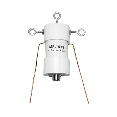 - El MFJ-913 es un balun / aislador central de antena de corriente verdadera de 300 Watts que transforma 200 Ohm en 50 Ohm.