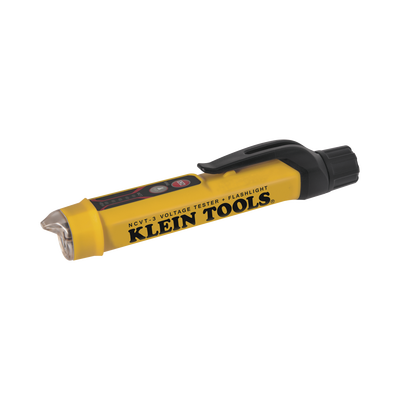 Detector de voltaje tipo lápiz que detecta entre 12 V y 1000 V CA y lo informa mediante indicadores visuales y audibles que se activan simultáneamente.
