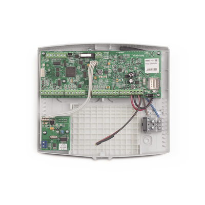 • Panel hibrido con capacidad de 8 zonas cableadas (16 mediante expansor), y 31 inalambricas.
