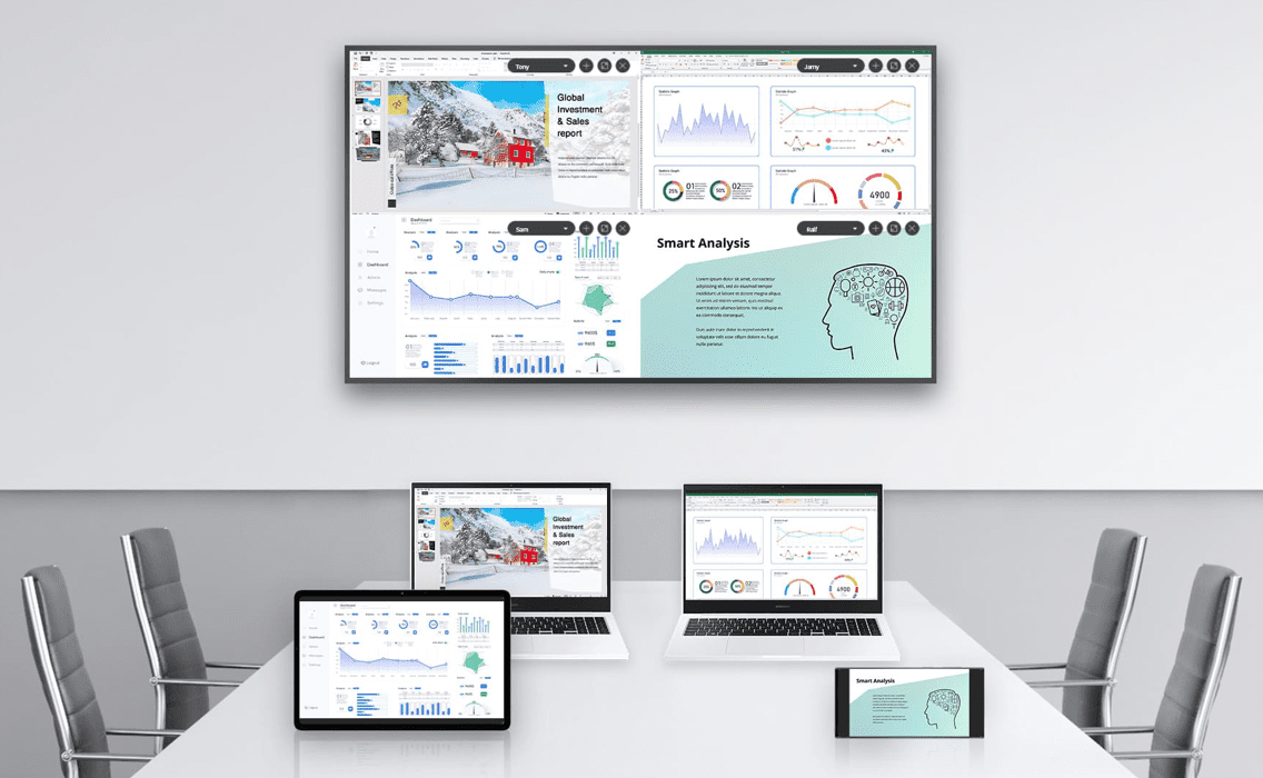- SmartView habillita compartir pantalla de manera inalambrica: 1, 2, 3 y 4 simultaneas (Win, Android, iOS móvil)