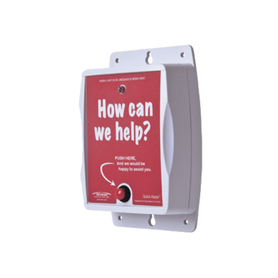 Con Quick Assist sus clientes, pueden simplemente presionar un botón cuando requieren asistencia y un mensaje personalizado será enviado alertando al personal equipado con radios de 2 vías.