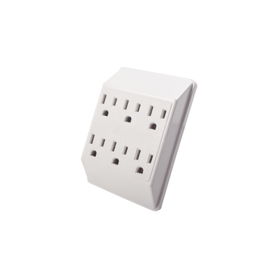 Multicontacto de pared 6 tomas 127vca l-t-n 15a max Fabricados en ABS. Corriente 15 A Tensión nominal 127 Vca / 60 Hz Entradas: 6 Dimensiones (ancho, largo, alto) 18.70 x 12.10 x 4.90 centimetros