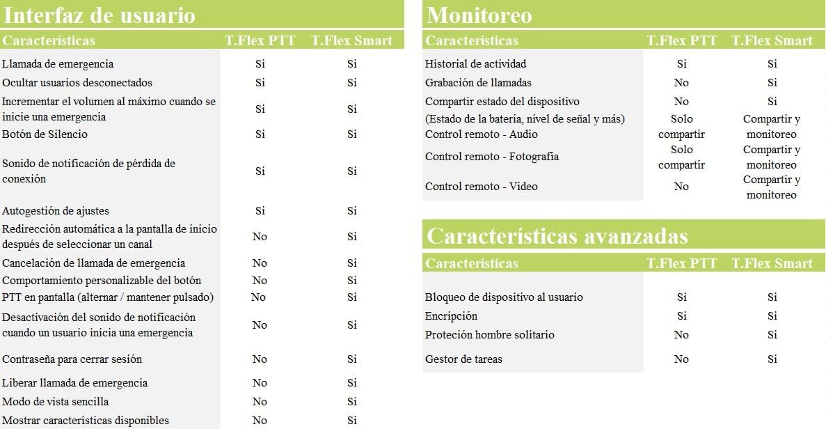 T.Flex proporciona la funcionalidad completa de un sistema de radio profesional y la amplía con funciones potentes como: intercambio de texto y datos, posicionamiento GPS y navegación, historial de actividades, trabajador solitario, control remoto, grabación de voz, localización en interiores y muchos otros.