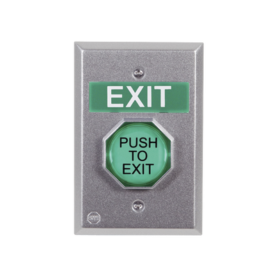 - Incluye cinco insertos para el pulsador – SALIDA, OPRIMA, EMPUJAR PARA SALIR, símbolo de discapacitado o en blanco.
